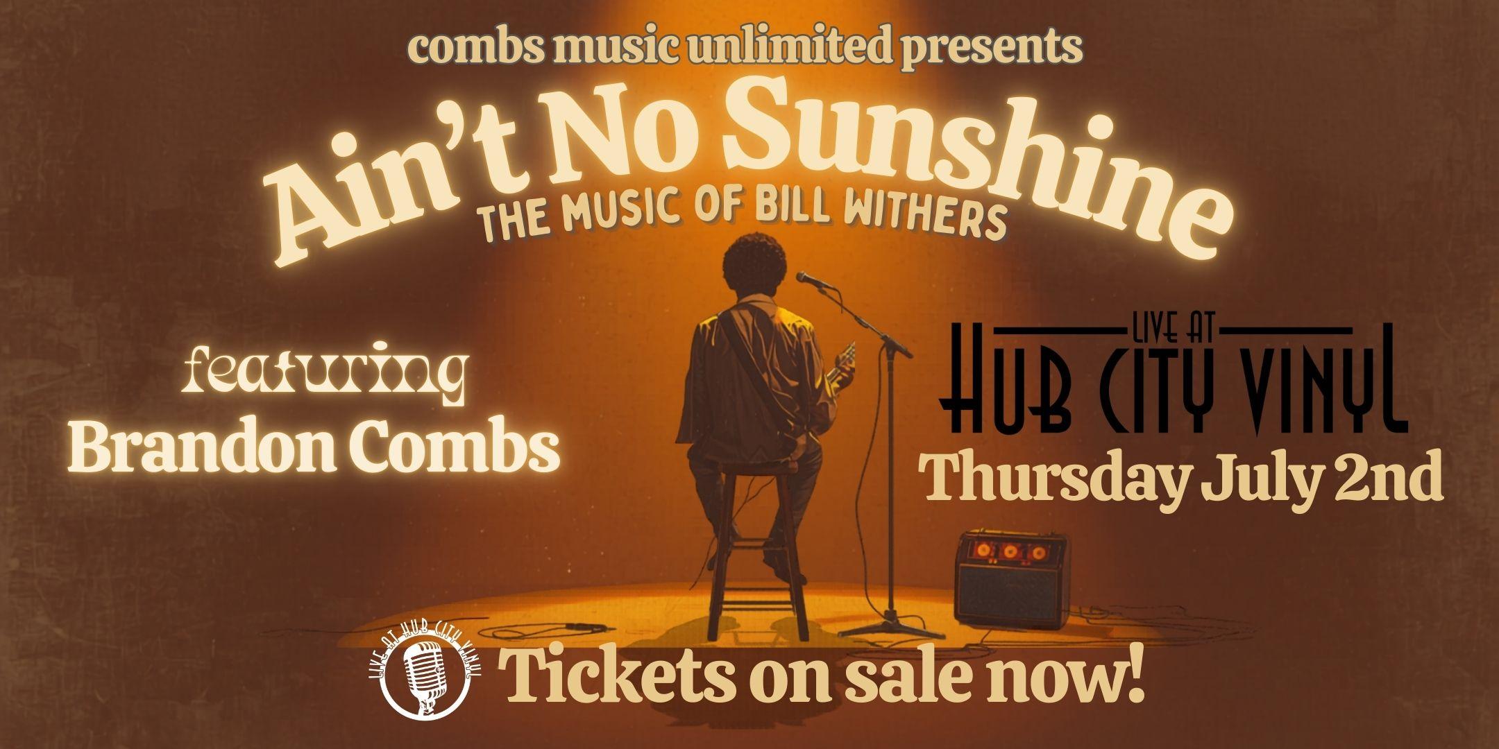 Live at Hub City Vinyl & Combs Music Unlimited proudly present, “Ain’t No Sunshine: The Music of Bill Withers” an uplifting evening of foot stomping, hand clapping hits and deep cuts alike from one of America’s greatest troubadours, Bill Withers. Bring your friends, family and loved ones out for an unforgettable night of musical favorites.