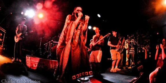 The band’s vibe and sound – honed over years of theatrical, improvisational shows with stretched out solos and vocal monologues – pays homage to the sounds of the ’60s through the ’80s with Keyes’ own mash-ups. Alongside the band’s original music are concoctions that could draw the horn lines from one song, guitar parts from another, and the bass and drums from yet another song. It’s a way for Keyes to honor his musical heroes while putting his original spin on their classic sounds.